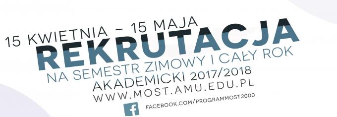 15 kwietnia rozpoczyna się rekrutacja do programu MOST - na cały rok akademicki 2017/2018 lub tylko na semestr zimowy 2017/2018. Wnioski można składać do 17 maja br. włącznie.